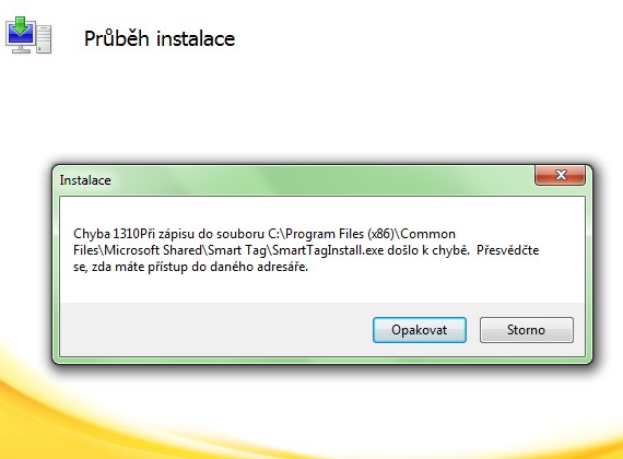 Smaž ten adresář, který je uveden na obrázku (myšlen adresář SmartTag) a spusť znovu instalaci.