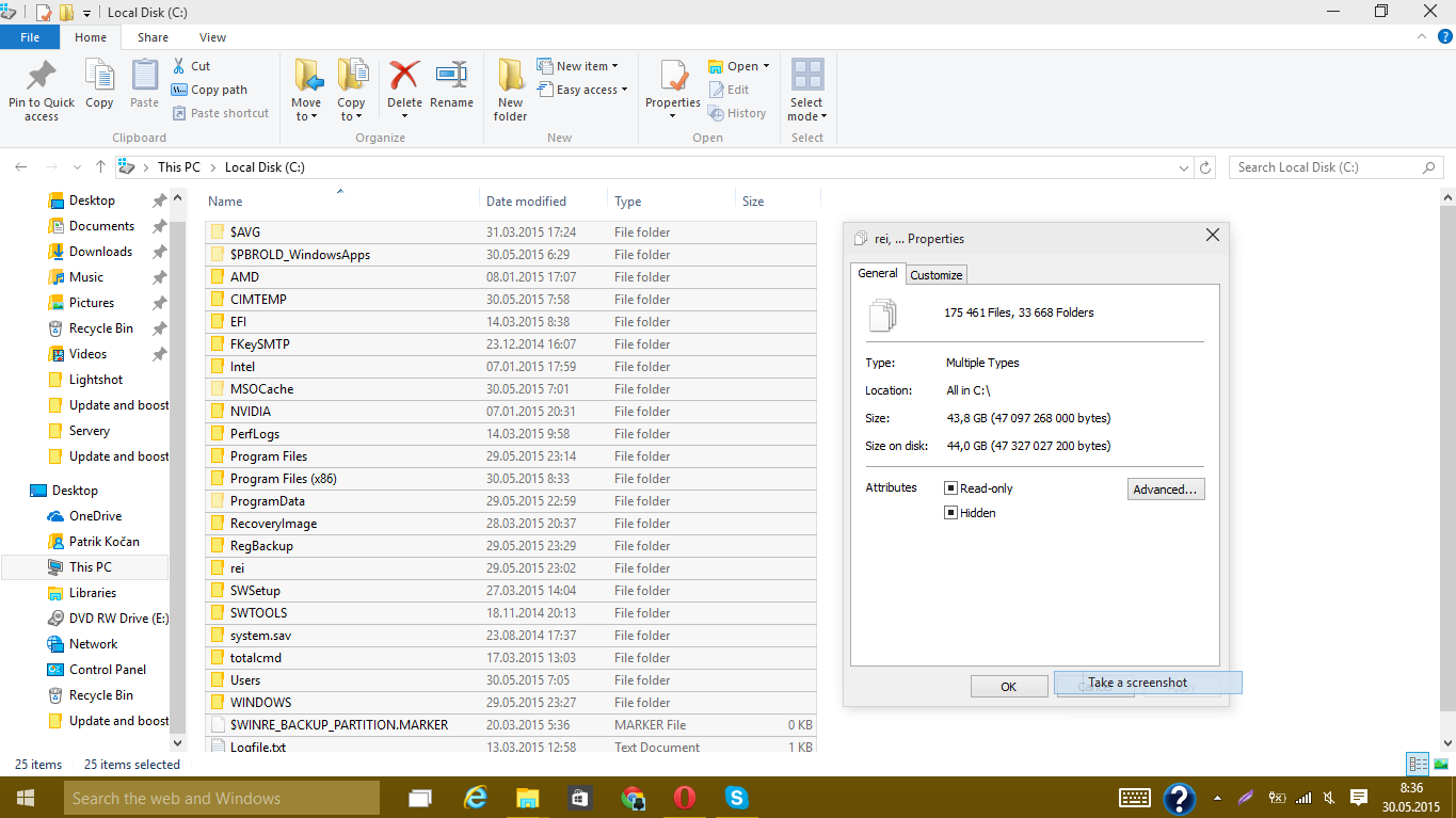 mám problém s tým, že keď označím všetky položky na disku a kliknem na vlastnosti tak mi ukazuje, že to má 44 GB (mám odkryté neviditeľné súbory) ale ukazuje mi, že voľné miesto je 325GB z 463 čo znamená, že 138GB je zaplnených. A nwm kde sa vzalo ďalších 94GB a nemôžem sa ku tým súborom dostať... Dal som tu aj Screenshoty. Nevedeli by ste mi poradiť ,čo to má znamenať?