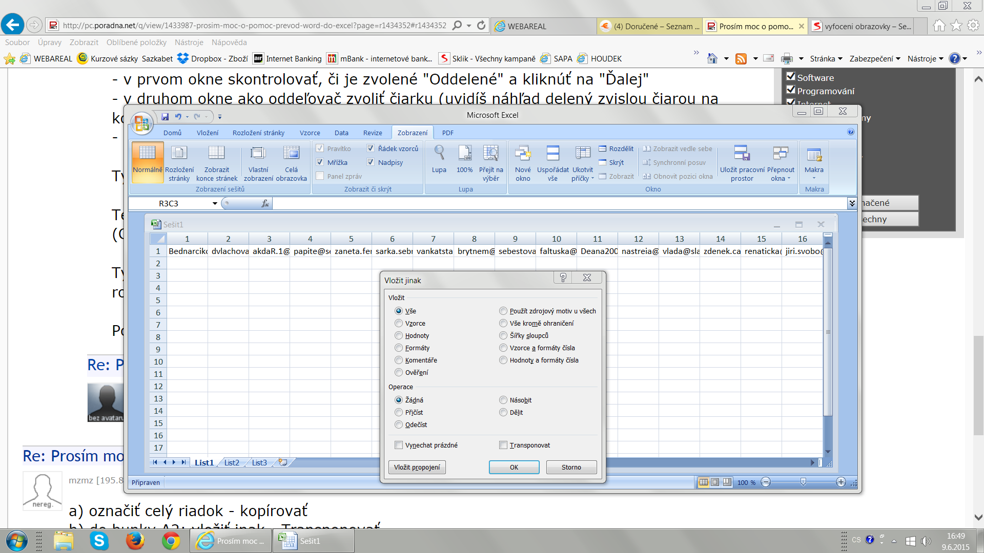 došel jsem až k: Prilepiť špeciálne-Transponovať a nevím jak na to jak to udělat? Mě tam vyskočí tab…