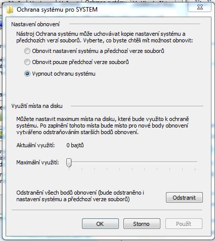 Ve win 7, Ovládací panely->SYSTÉM->UPŘESNIT NASTAVENÍ SYSTÉMU->OCHRANA SYSTÉMU->KONFIGUROVAT->ODSTRA…
