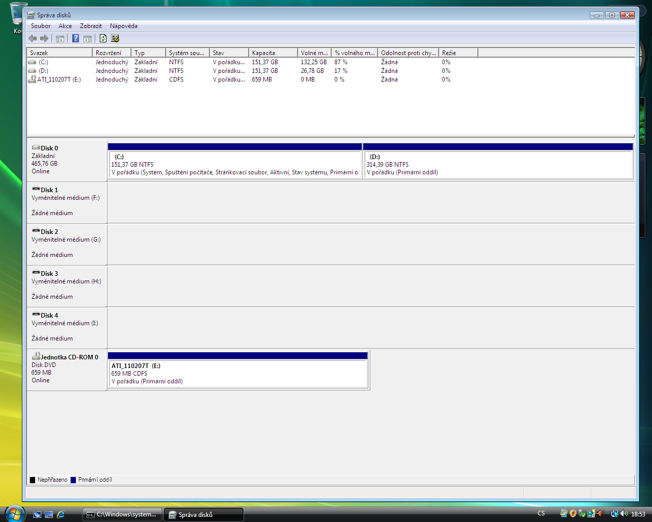 Dej sem obrázek ze Správy disků (diskmgmt.msc), jinak se nehnem.