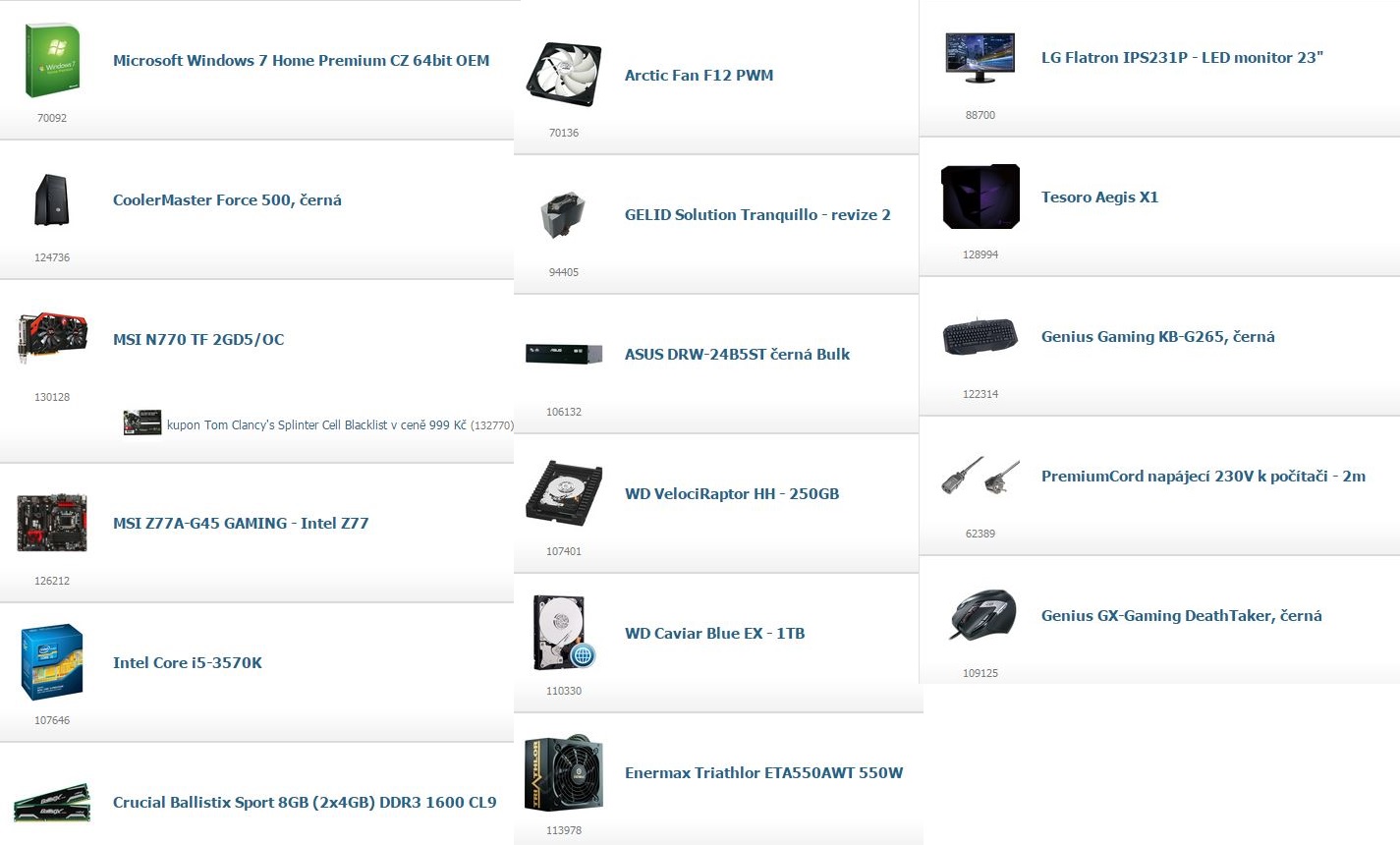 No to by si moc nepomoh ceny komponent si může porovnat na Aukru ...