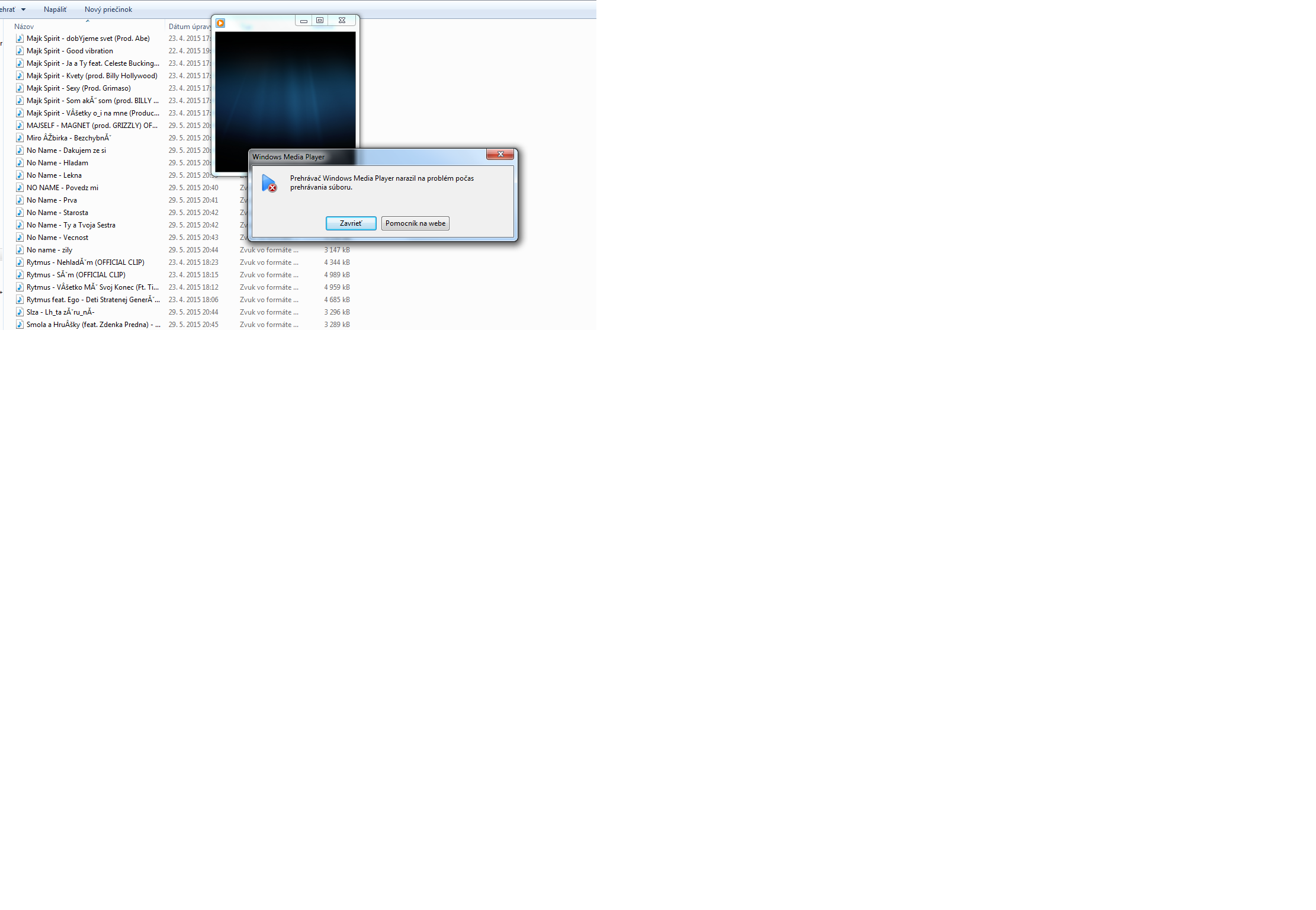 zobrazí sa nejaká chyba v prehrávači Windows media plaer. jaká presne chyba? Odpojuješ flash disk…