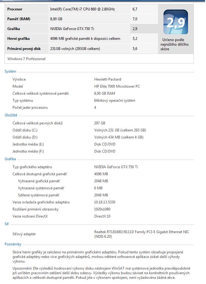 Tak to AVG odinstaluj,jinak to vyhodnocení 2,9 je hodně divný s touhle GPU (nainstaloval si k ní ovl…