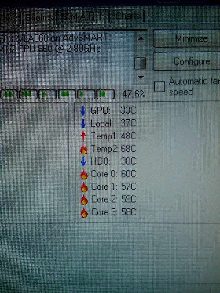 Ano počítač mám od HP. Přikládám ještě fotku ze správce úloh a ještě jsem si stáhl speedfan na změření teplot CPU a posudte sami. Nemyslím si, že by to bylo ovladači chipsetu. když jsem vyměnil zdroj a grafiku, tak při zapnutí PC kdy jsem ještě nepřeinstaloval win tak mi to právě dělalo taky. zkusím tam vrátit starou grafiku a jestli problém bude přetrvávat chybu bude někde jinde