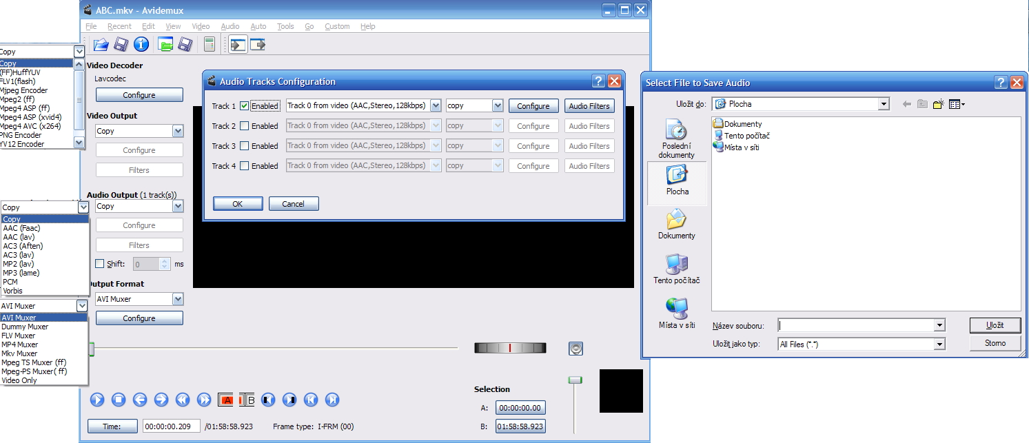 b) v avidemuxe nejde načítať druhý videosúbor a extrahovanú zvukovú stopu z vyššieuvedeného popisu k videu pridať?