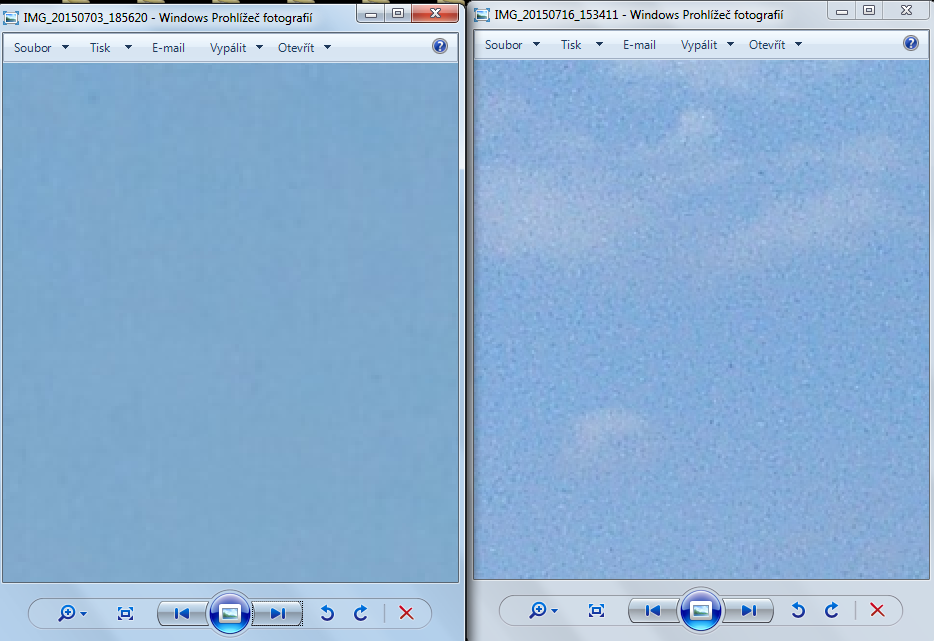 obojí jsou jpeg, plné rozlišení, po porovnání z exifu téměř totožné parametry. Podobné prostředí- sl…