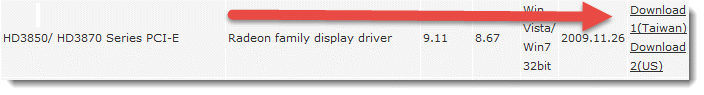 HD3850/ HD3870 Series PCI-E Radeon family display driver 9.11 8.67 Win Vista/ Win7 32bit 2009.11.26…