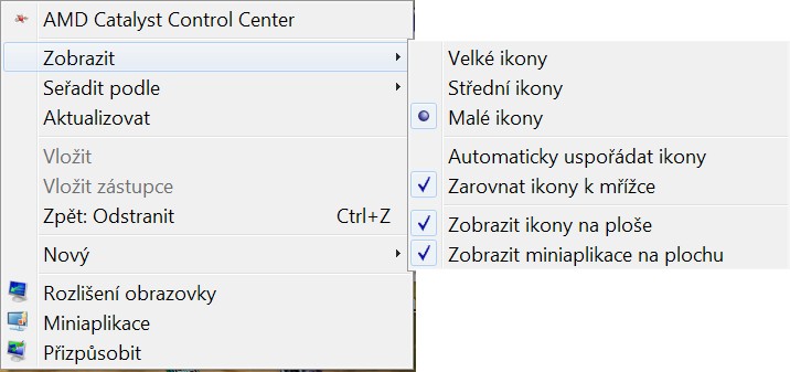 Takové - či podobné - menu jsi někdy viděl? Je to v pravém tlačítku myši na Ploše.