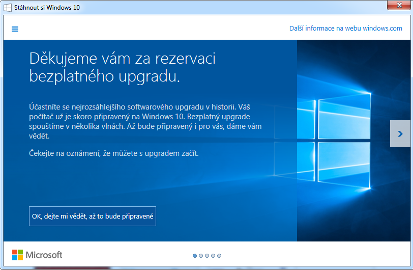 Dobrý den.Chtěl bych se vás zeptat,jak nainstalovat W10.. Vždycky když zapnu "Stáhněte si W10" tak se ukáže jen toto a přitom mi to nikdy neukáže,že už můžu upgradovat.Neví někdo prosím,jak to vyřešit?