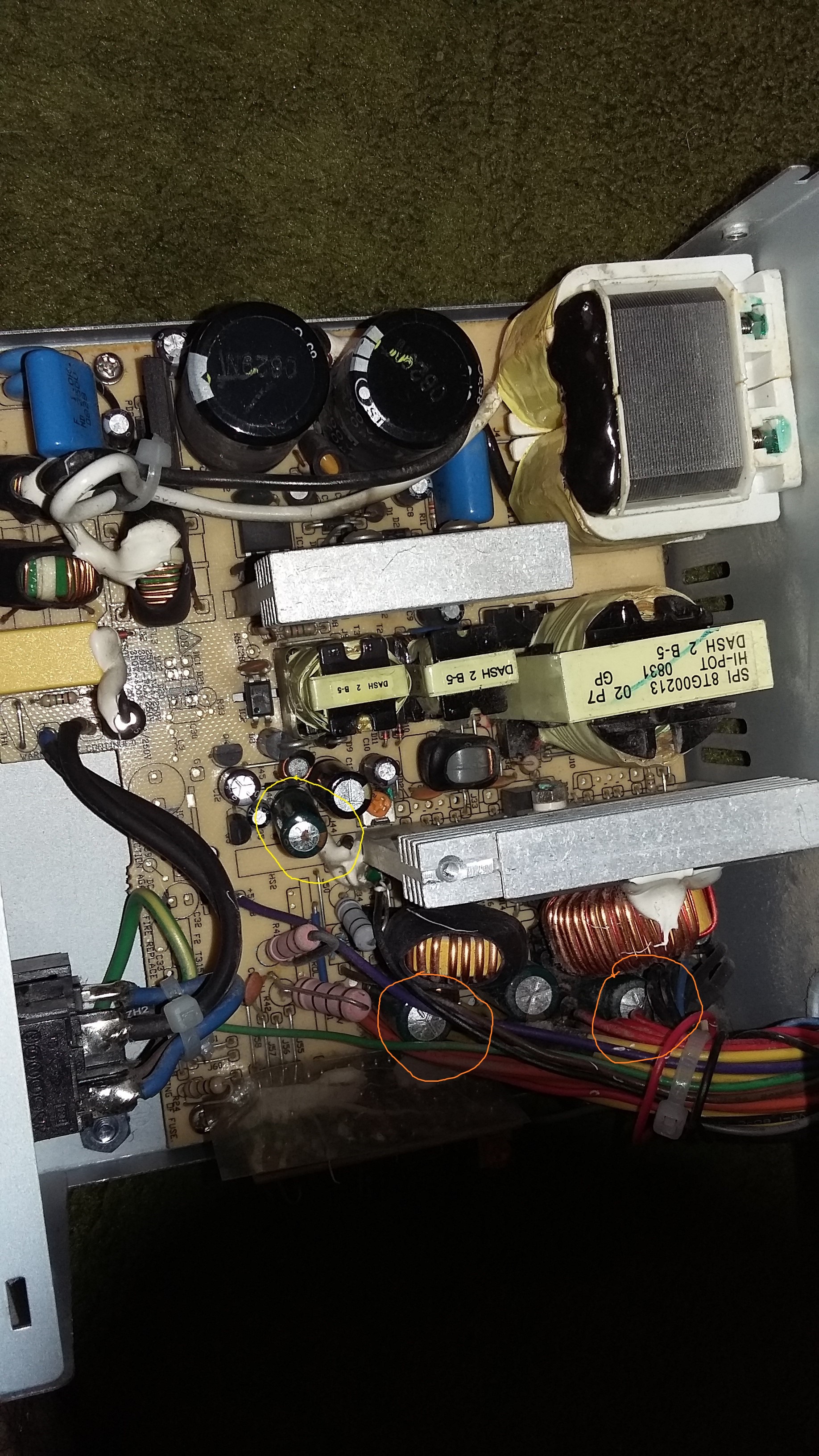 Ted jsem si všiml, že je opálený ten šedý drát pod velkýma kondíkama na primární straně. Tak že by dioda...