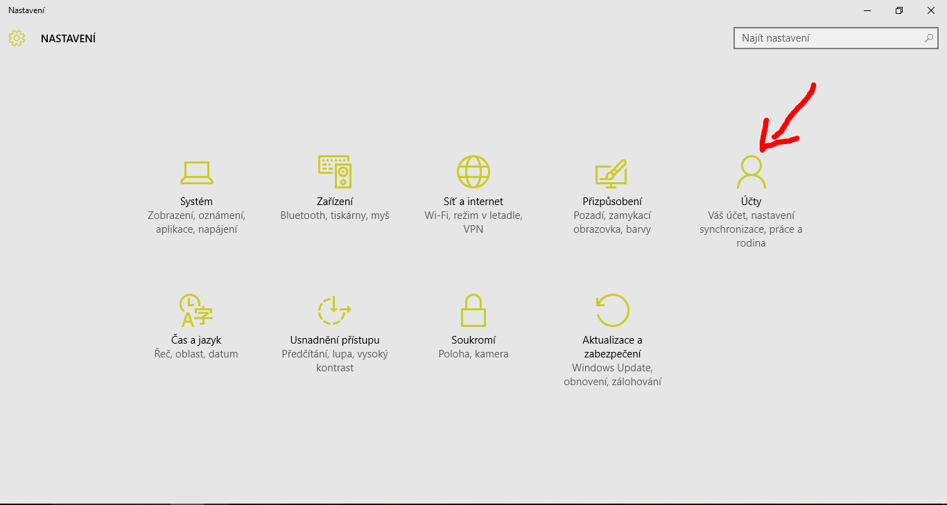 Otevři aplikaci Nastavení. V ní vyber "Účty."