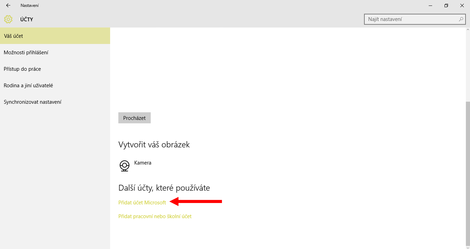 Sjeď úplně dolů a vyber "Přidat účet Microsoft." (já jsem již přihlášen, tudíž nevím na 100% že to najdete tam kde já