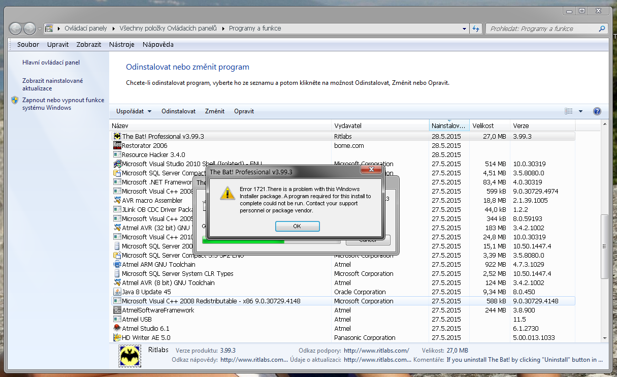 Mám takový problém s odinstlací mailového klienta TheBat!. Při odinstalaci to vyplivne hlášku.. viz. příloha.