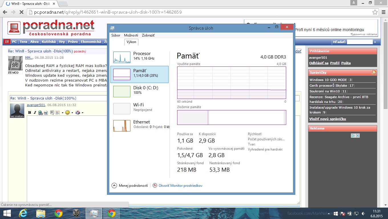 Win8 - Spravca uloh -Disk(100%)