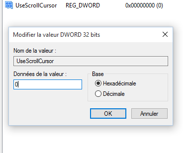 • Jestli ano, tak vytvor novy DWORD, pojmenuj ho UseScrollCursor a dej mu hodnotu 0