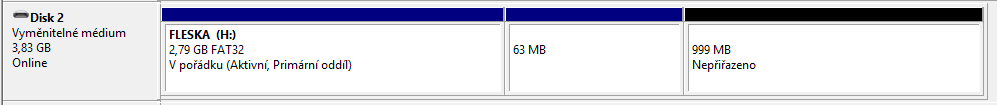 Ten 999MB nejde formátovat/přiřadit - NIC.
