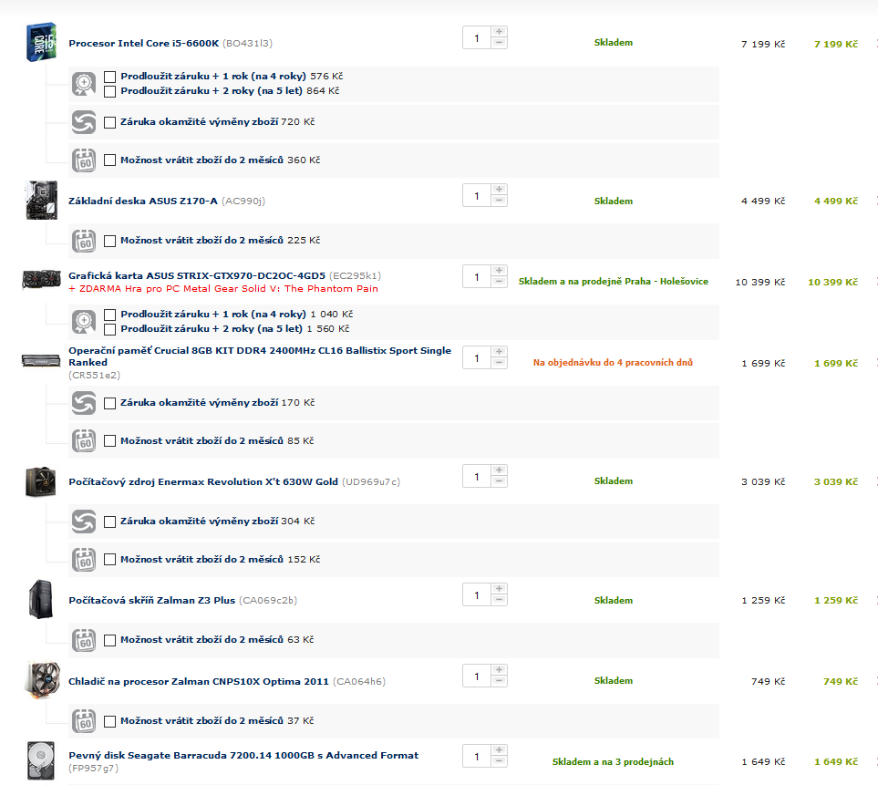 • i5 6600K • Asus Strix GTX 970 OC <DCII series> • Crucial 8G RAM DDR4 • Asus Z-170A