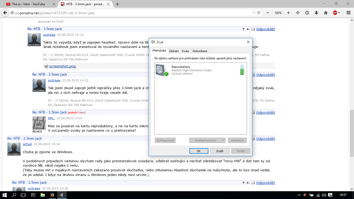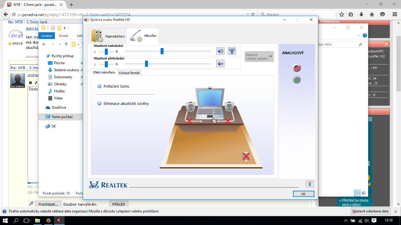 Ovladače jsou z stránky výrobce. Jinak repráky nestrkám do jacku na mikrofon. Psal jsem, že takhle t…