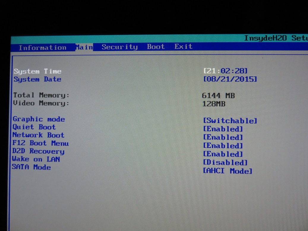 Update na vyšší verzi biosu jsem zkoušel, stáhnul jsem si pro svůj model ze stránek aceru a ono mi to napsalo že nelze upgradovat z verze 1.3 na 2.x, zřejmě tady bude problém.
