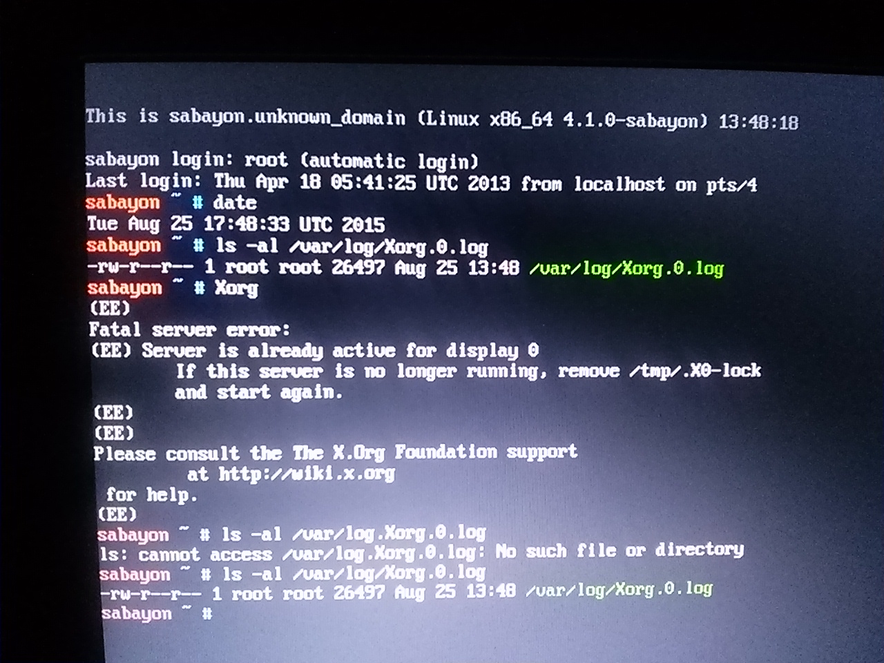 se podivej, kdy byul naposled zmenen ten soubor, pokud to asi tak sedi, tak fajn, xserver se zkusil spustit automaticky a neuspel , pokud soubor neni, nebo byl moc davno, tak se to ani nepokouselo ten xserver spustit a budeme to muset udelat rucne prikazem Xorg