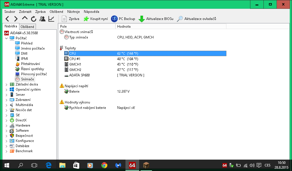 V tom programu se moc nevyznam.Stahnul jsem aida 64 extreme. Tady je screen teplot cpu atd. při hra…