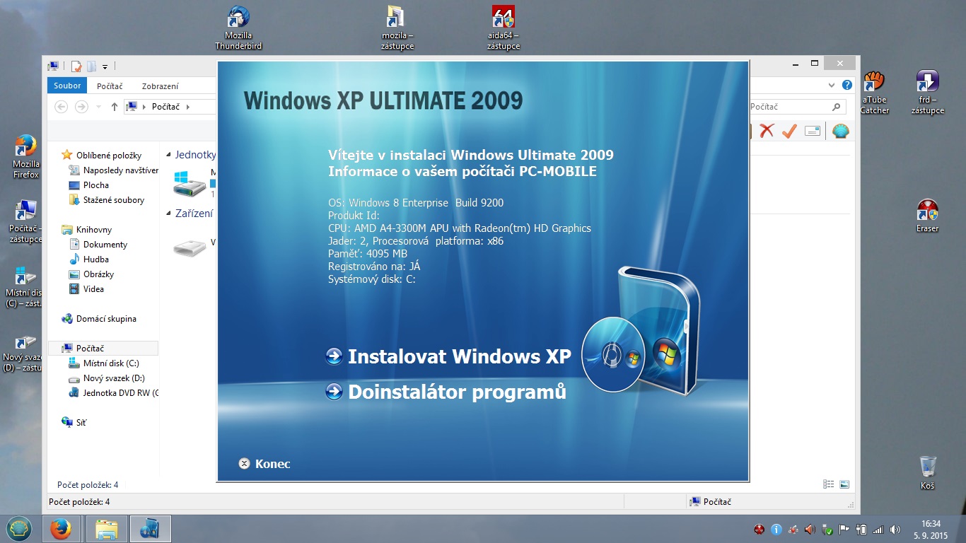 Je ten XP Ultimate 2009 na DVD, má 3,27GB tak je snad jasné, že to není skutečné XP, ale směska XP s Vistou.