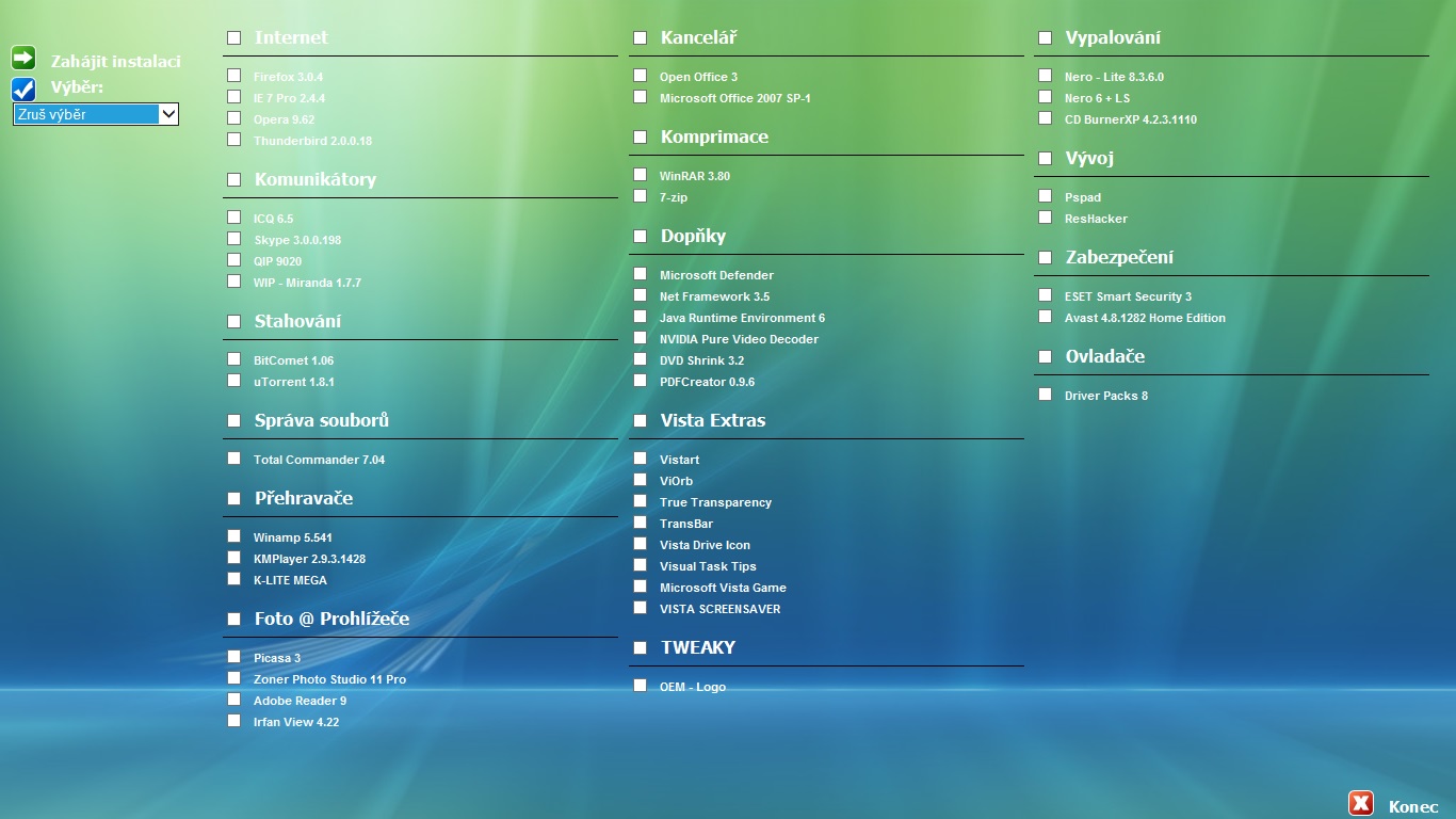 Jinak má menu s tzv doinstalátorem programu.