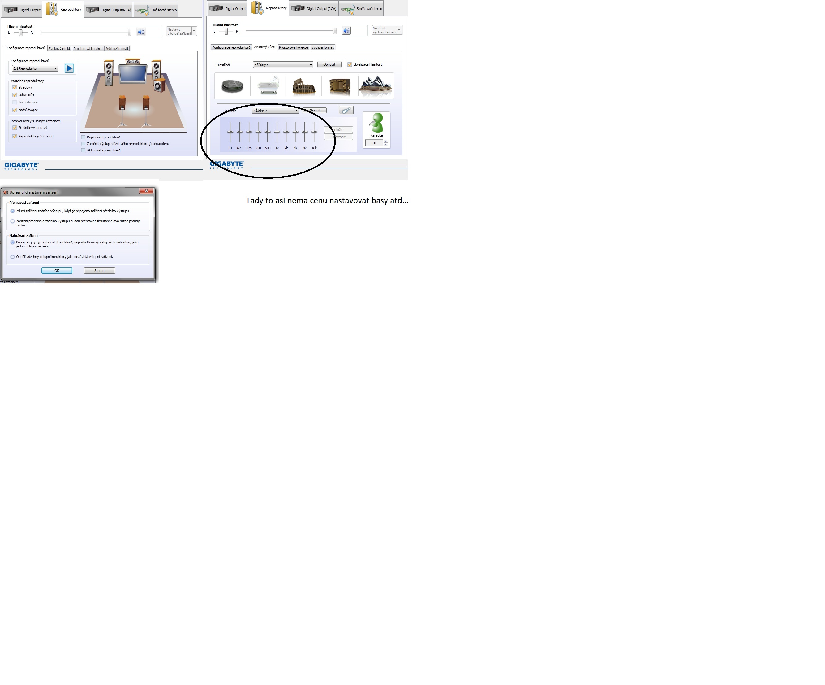 potřebuji zvuk ze všech repráků o vyladění bas a výšek mi nejde počítám že subwoofer bude jen basova…