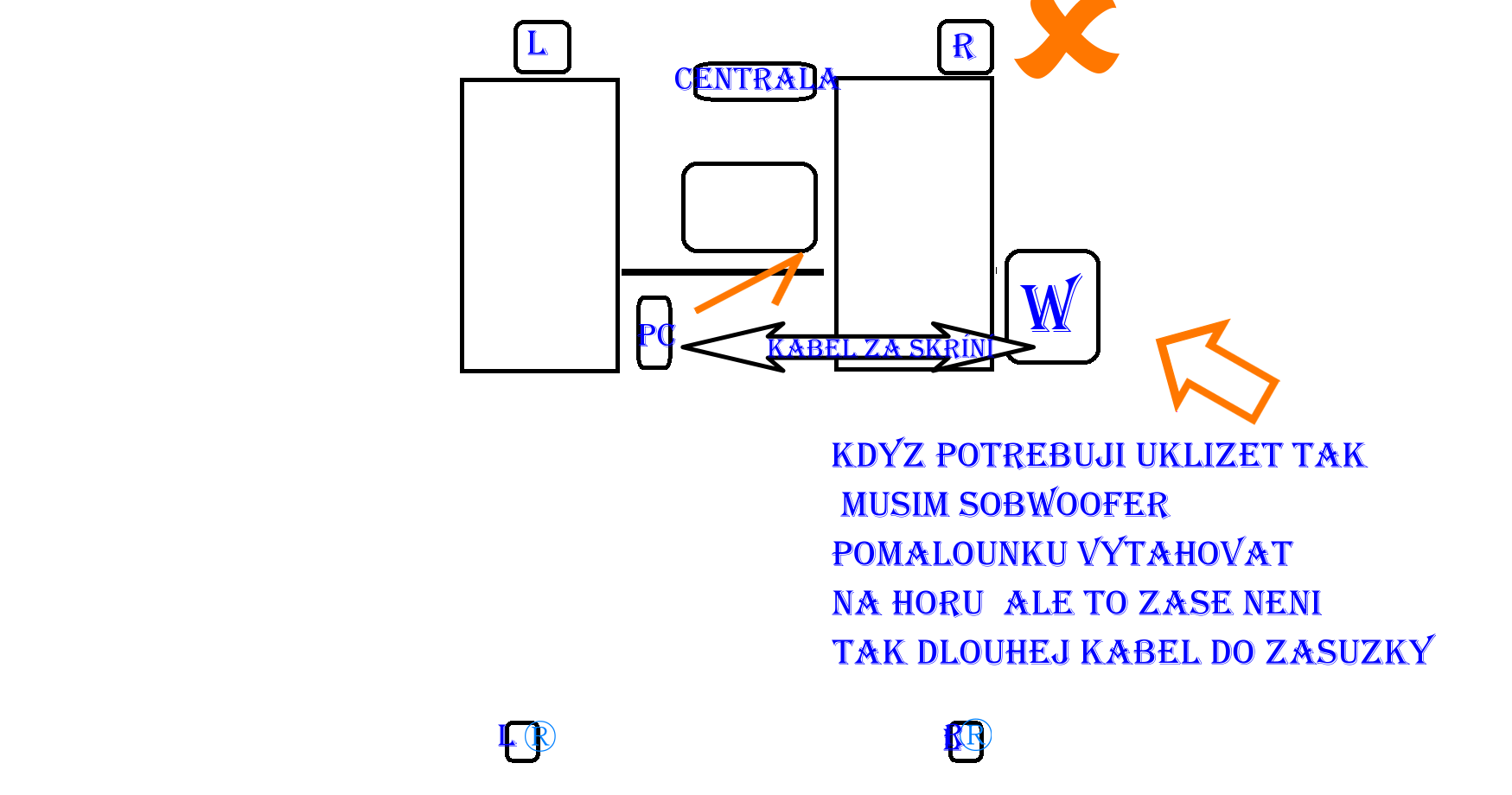dobře jede to ale po menším stěhovaní zjištuji že mi kabely nedošáhnou od sudwolferu k pc 2xrca=jack…
