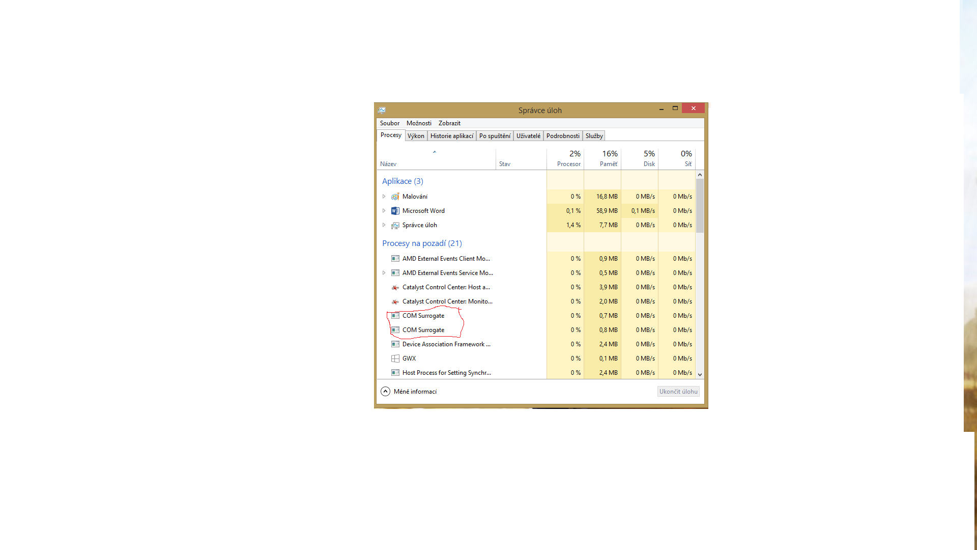 ted jsem objevil ve správci uloh náhodou proces COM surregate, který po pár vteřinách,hlavně pohybu myší okamžitě zmizel,podrobnosti jsem o něm zjistitl nemohl. Když jsem název tohoto zadal do vyhledávače, vyjelo virus-com-surrogate . Máte někdo s tímto procesem zkušenosti? Zapnutý byl při nicnedělání, jakmile jsem začal hýbat myší zmizel.