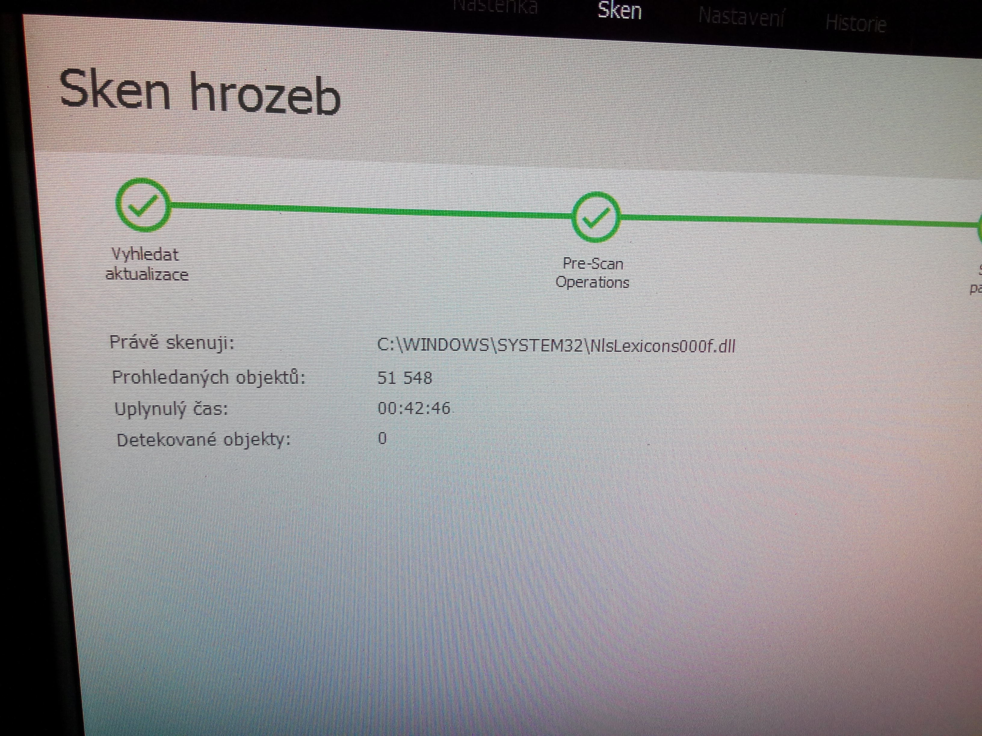 Dal jsem skenovat,vše v pořádku než dorazil k systémové složce, název jsem zapomněl. V tu chvíli se to v obouch případech skenování seklo,zamrzl celý počítač a musel jsem ho restartovat.
