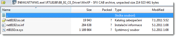Ale kulový instalačky, je to normální samorozbalovací archiv. Ta hovadina má přes sto mega, z toho ovladače pro Windows XP něco málo přes 1 MB. Když to nedokážeš najít, tak si to někam rozbal a nech si je najít pomocí Windows.