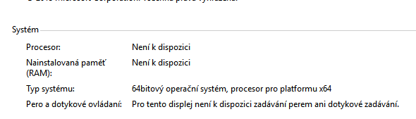 Zdravím, nedávno jsem ve svém pc narazil (na ne tak moc velký) problém který mi sice nevadí ale zajímalo by mě, jestli někdo neví, co by s tím mohlo být. Už se to dělo u WIN7 a po nedávném upgradu na win 10 to na chvíli přestalo ale potom se to zase stalo. V ovládacích panelech ve vlastnostech systému nemám napsáno, co mám za procesor a ani kolik mám ram. Jen tak mě napadá, jestli by v tom nemohl být nějaký vir nebo něco podobného ale pc jsem zkoušel projíždět antivirem i MBA.