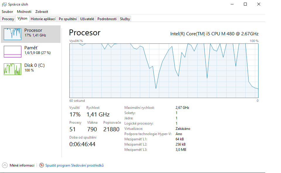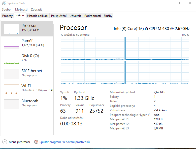 3 MB L3 Cache ,2 jádra, 4 thready Intel Turbo Boost s frekvencí 2,93 GHz) který je dvoujádrový tak mi ukazuje že má pouze jedno jádro jak ve správci úloh tak i ve správci zařízení.Funguje pouze jedno jádro podle mě proto se počítač seká. nevíte čím to muže být? děkuji všem