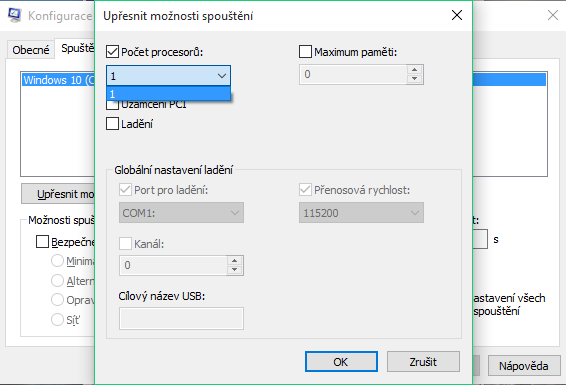 Nevím to jistě ,ale v msconfig dáš sekci "Spuštění počítače" a tam "upřesnit možnosti" Pokud máš "po…