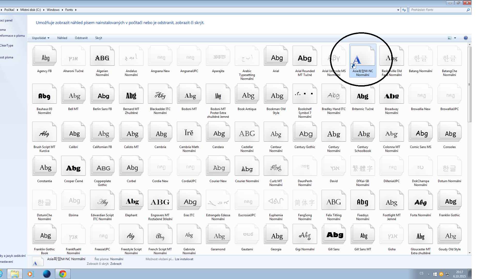 Na tom obrázku, co jsi smazal je zástupce fontu. Měl bys tam vidět i cestu.