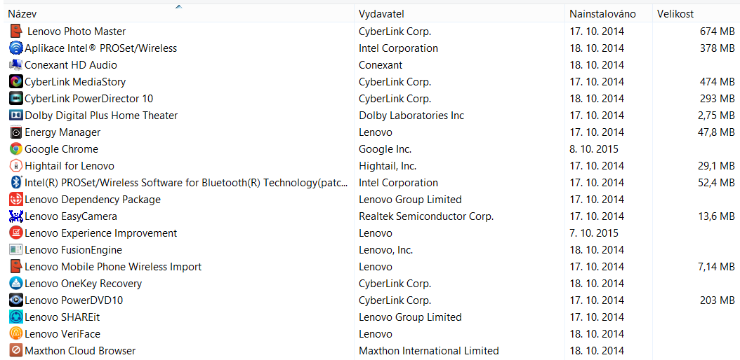 Které z předinstalovaných programů můžu odinstalovat aniž bych něco pokazila a uvolnila místo ?