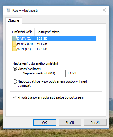 Nevím úplně púřesně, co myslíte tím "nastavením koše". Prostě chci hodit soubor do koše, případně označím soubor a stisknu Delete a naskočí ta hláška... Myslím, že mazání samo o sobě problém není, prtoože nově vytvořené soubory smazat jdou a naopak ty staré nejde ani přejmenovat nebo přesunout do jiné složky.
