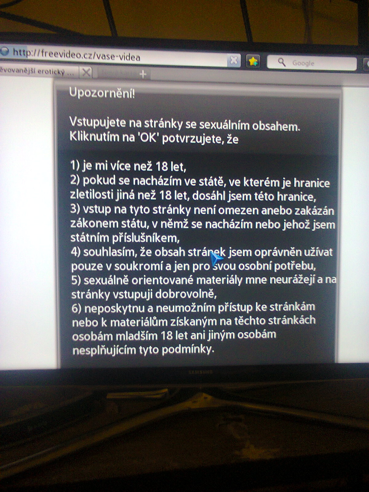 Mám takový delikátní problém když si chci prohlížet stránky s videem nad 18 let tak mě vyjede upozornění viz dole problém je v tom že na té TV není vidět kde je tlačítko OK respektive se ten dialog roztáhne víc něž je záhodno nevíte jak na to ? díky