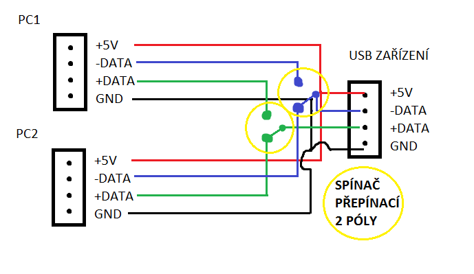 Aha, takže se rázem z jednoduchého přepínání 4 kablíků stává docela složitá záležitost, protože usb…