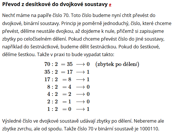 A zbytek je buď 1, nebo 0, tudíž chci, aby ho to vypsalo.