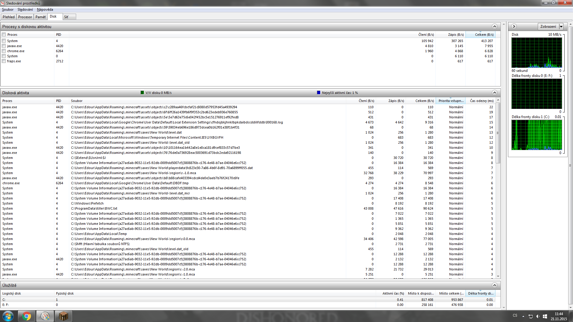 Koukám na to přes Sledování prostředků přímo ve Win a když mám zapnutý např Minecraft tak to ukazuje…