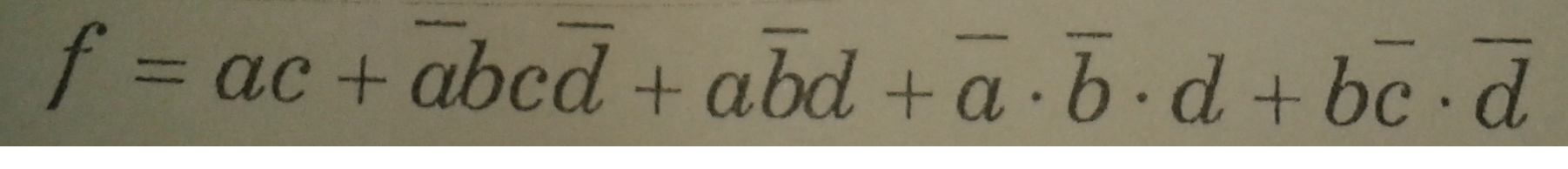 f = ac + a'bcd' + ab'd + a'b'd + bc'd'