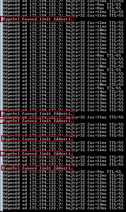 Test pingu na google.com tyto výpadky také zaznamenává
