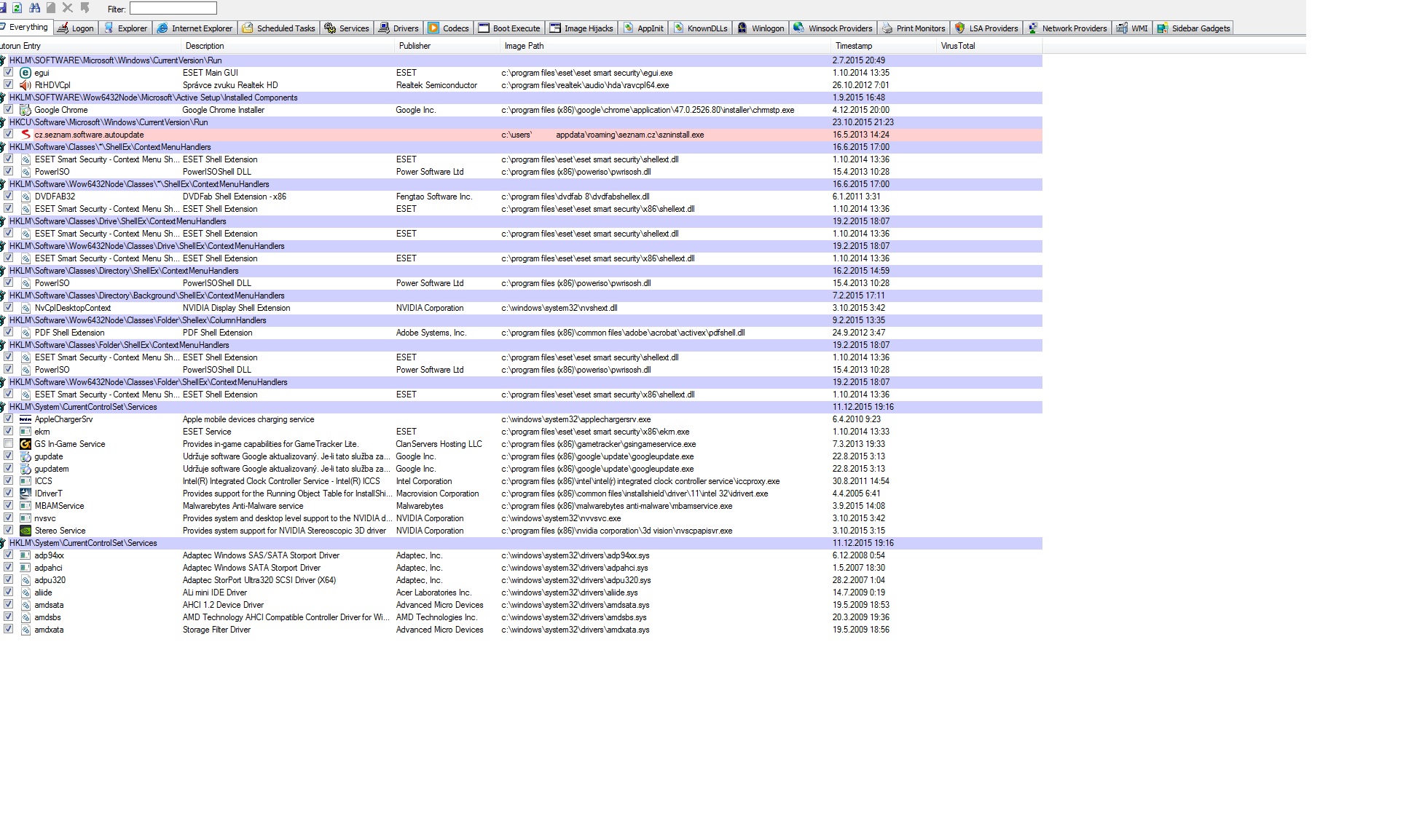 projdi si konečně ten ms autoruns - roztáhni si sloupce, ať vidíš na názvy a celé cesty.