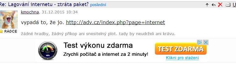 Přidat otázku mezi oblíbenéZasílat nové odpovědi e-mailem Lagování internetu - ztráta paket?