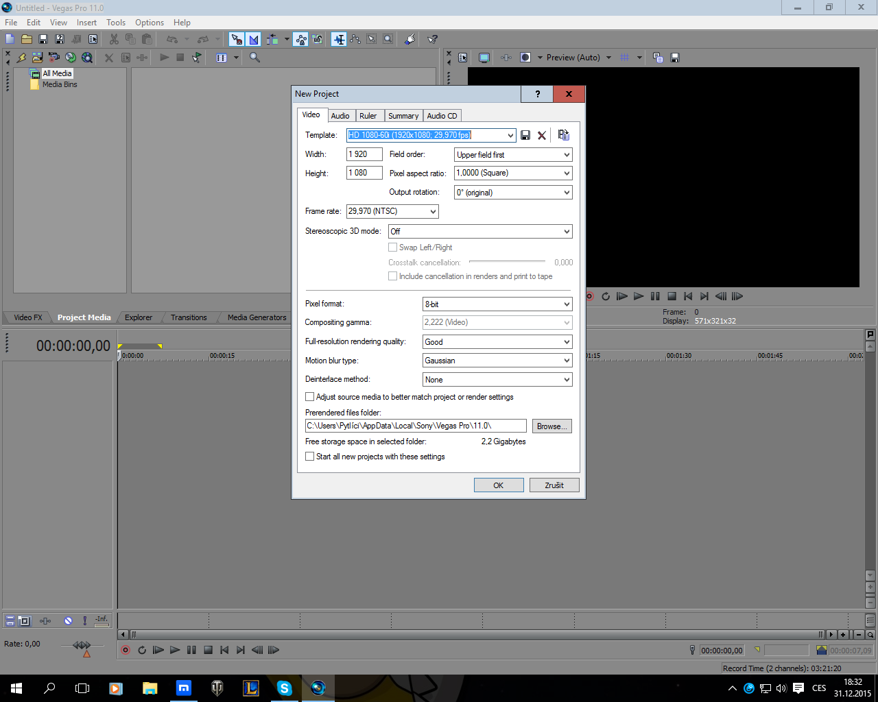 Sony Vegas Pro 11 problém s rozlišením