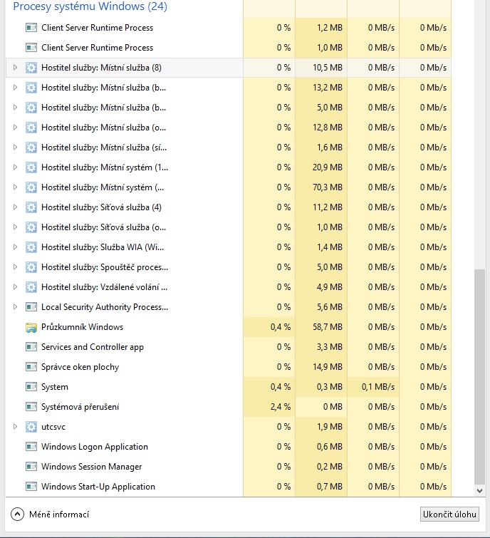 Ale asi dalších 80 % procesů nevím, "co jsou zač". A nerad bych, kdyby jsem nějaký z nich vypl a nefungoval by windows, tak jak by měl...