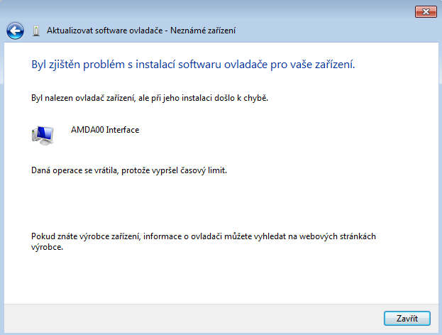problém s instalací ovladače AMDA00 Interface ve win 7